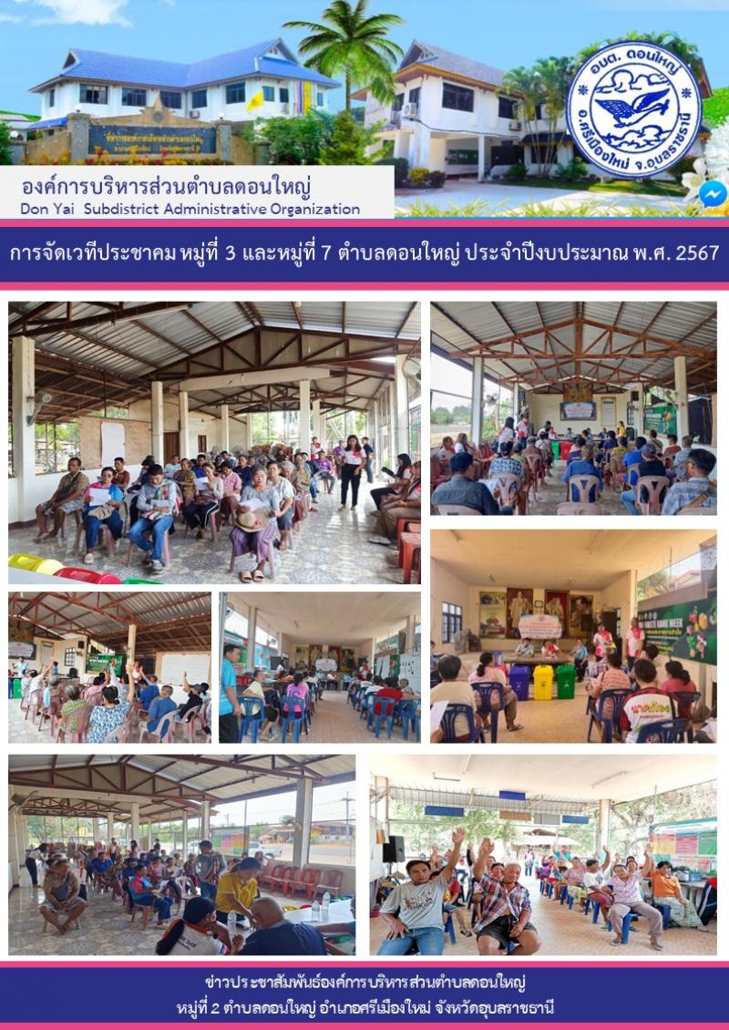 การจัดเวทีประชาคม หมู่ที่ 3 และหมู่ที่ 7 ตำบดอนใหญ่ ประจำปีงบประมาณ พ.ศ. 2567