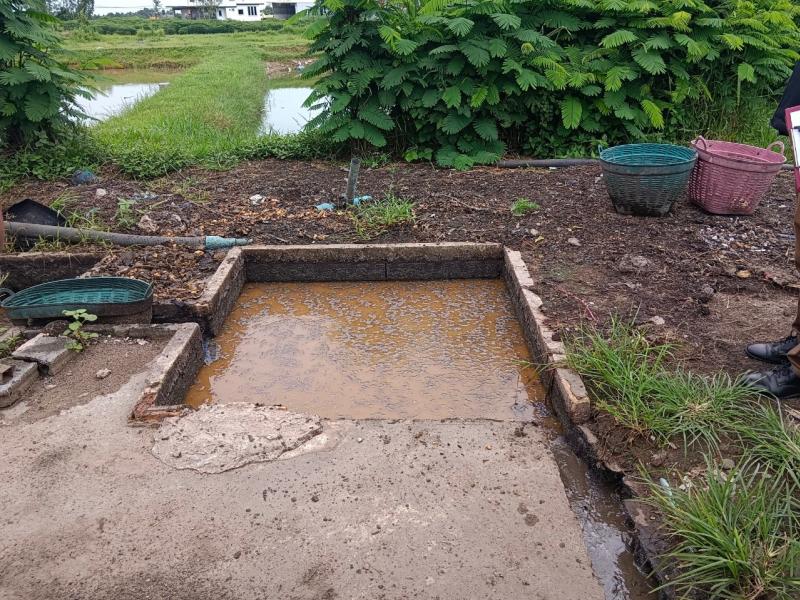 ลงพื้นที่ตรวจสอบการจัดการแก้ไขปัญหากลิ่นเหม็นรบกวนของร้านดี เค ด้ามขวานการเกษตร