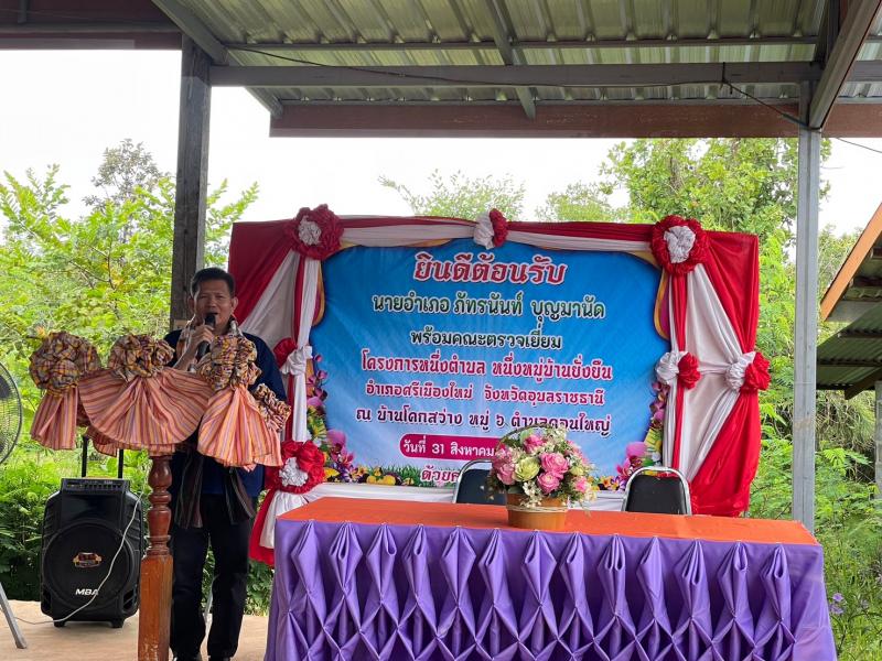 รายละเอียด : เมื่อวันที่ 31 สิงหาคม 2566 เวลา 09:00 น. นายภัทรนันท์ บุญมานัด นายอำเภอศรีเมืองใหม่ เป็นประธานตรวจเยี่ยมการขับเคลื่อนโครงการหนึ่งตำบล หนึ่งหมู่บ้านยั่งยืน (Sustainable Village) เพื่อเฉลิมพระเกียรติ สมเด็จพระเจ้าลูกเธอ เจ้าฟ้าสิริวัณณวรี นารีรัตนราชกัญญา ณ บ้านโคกสว่าง หมู่ที่ 6 ตำบลดอนใหญ่ อำเภอศรีเมืองใหม่ จังหวัดอุบลราชธานี โดยมีการดำเนินกิจกรรมดังนี้ 1. การปลูกต้นไม้เพื่อเป็นการเพิ่มพื้นที่สีเขียวและอนุรักษ์ทรัพยากรธรรมชาติ 2. การตรวจโคกหนองนาและกลุ่มอาชีพเลี้ยงสัตว์ในชุมชน 3.การตรวจติดตามการทำถังขยะเปียกและการคัดแยกขยะ 4.การมอบสิ่งของอุปโภคบริโภคให้กับกลุ่มเปราะบางในพื้นที่ 5.การถวายภัตตาหารเพลแด่พระภิกษุสงฆ์ โดยมีหัวหน้าส่วนราชการ นายกองค์การบริหารส่วนตำบลดอนใหญ่ ชุดปฏิบัติการตำบล ข้าราชการ พนักงาน ลูกจ้าง อสม. กำนัน ผู้ใหญ่บ้าน ฯลฯ ภาคประชาชน และจิตอาสา ร่วมกิจกรรม