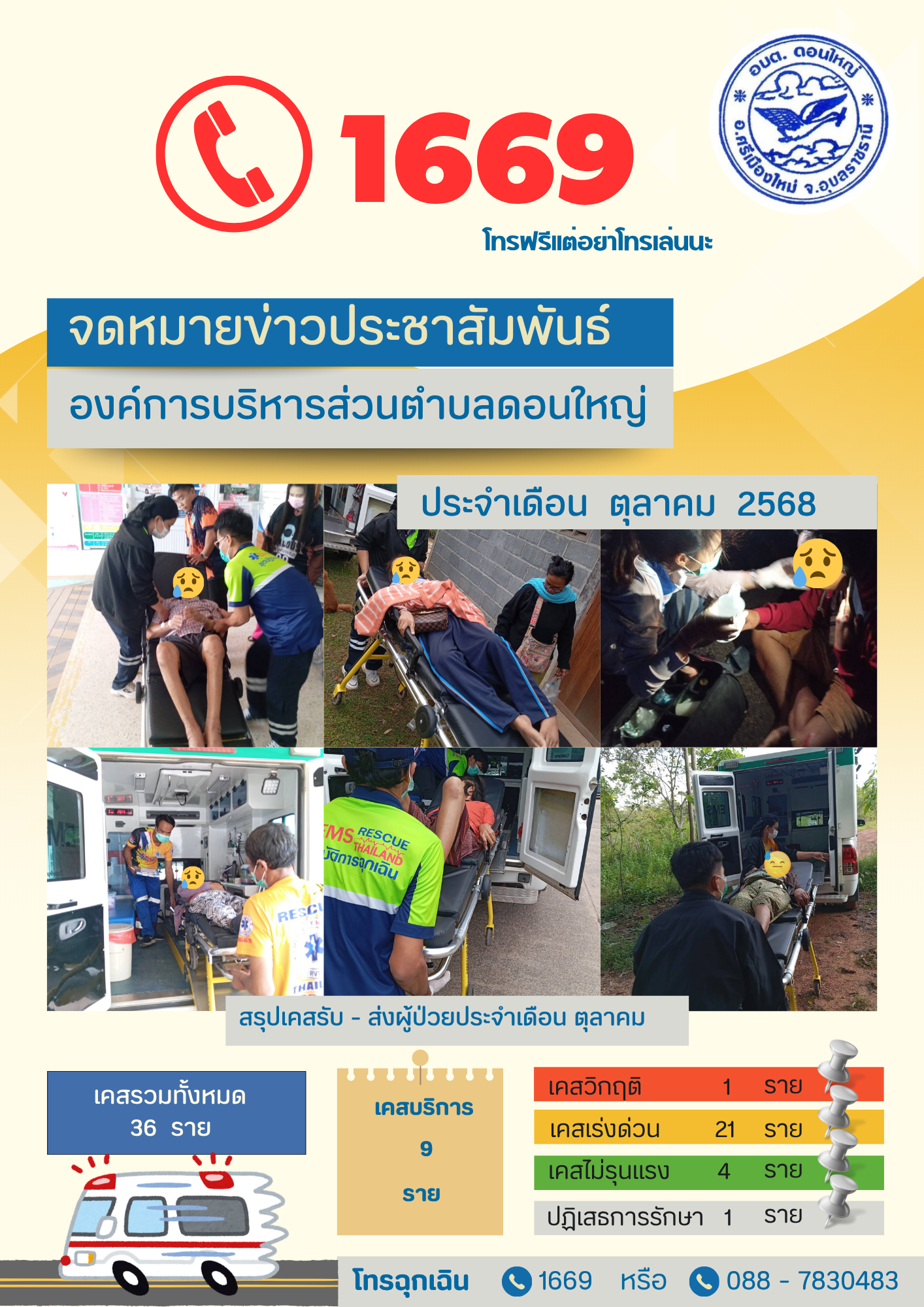 ชื่อเรื่อง : ประชาสัมพันธ์การให้บริการหน่วยกู้ชีพ อบต.ดอนใหญ่ ประจำเดือน ตุลาคม พ.ศ. 2568